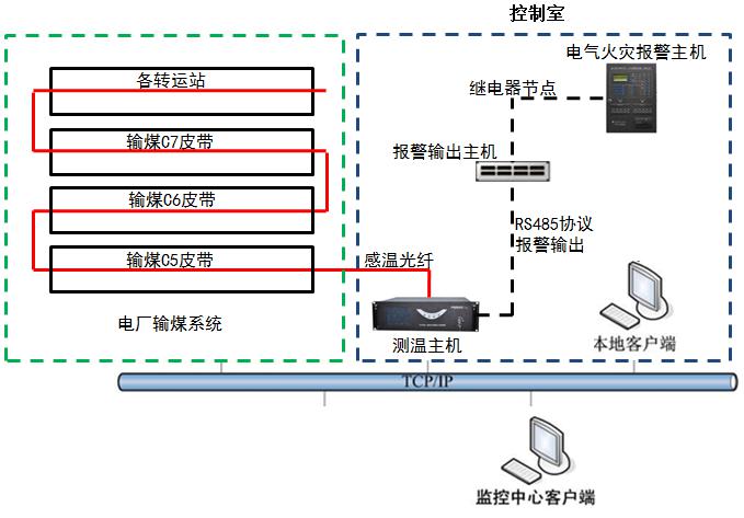 深圳市迅捷光通科技有限公司基于分布式光纖傳感技術(shù)研制開發(fā)的新型火災(zāi)探測(cè)系統(tǒng),通過(guò)實(shí)時(shí)檢測(cè)感溫光纜中背向散射光信號(hào)強(qiáng)度隨溫度的變化情況,可實(shí)現(xiàn)對(duì)礦井電力系統(tǒng)傳輸電纜及輸煤皮帶的在線實(shí)時(shí)溫度監(jiān)控和火災(zāi)預(yù)警報(bào)警。