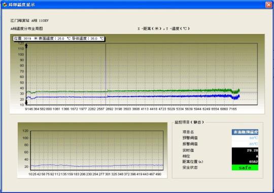 Ampacity電力電纜載流量分析軟件系統用于準確實時計算出監測區域內所有回路的電纜導體溫度和短時使用電流,提供完整的電纜負荷安全監測的解決方案。Ampacity電力電纜載流量分析軟件系統實時從分布式光纖測溫系統獲取溫度數據,并采集回路電纜狀態實時數據作為分析基礎數據。Ampacity電力電纜載流量分析軟件系統基于IEC60287標準實現動態載流量計算,系統局部界面集成了整條電纜表面溫度曲線顯示,發現異常情況則向報警設備發送報警指令(根據用戶需要將報警信息發送給指定用戶)。